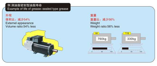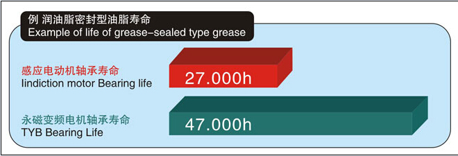 因?yàn)檗D(zhuǎn)子幾乎不發(fā)生損失,所以軸承溫度較低,密封油脂壽命大約延長(zhǎng)至本公司YVF2系列變頻器專(zhuān)用IM的1.5-2倍(約32,000-47,000 Hr),可減輕維護(hù)工作。