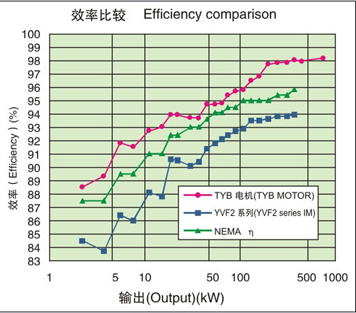 效率比高效電機(jī)NEMA標(biāo)準(zhǔn)值約提高3%左右,比本公司YVF2系列變頻器專(zhuān)用IM約提高5%左右。