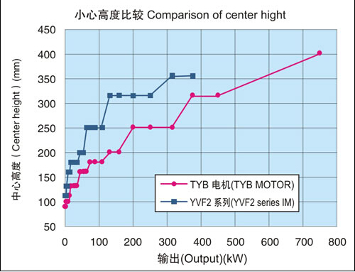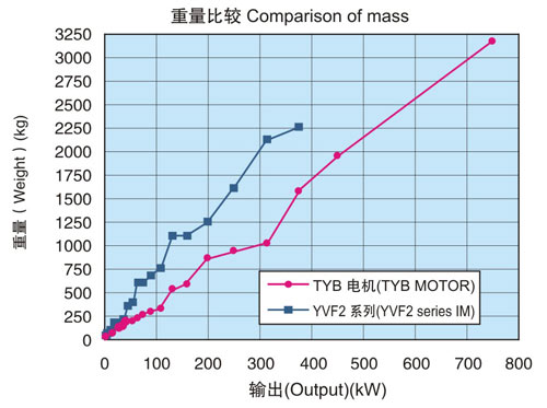 在同一輸出下中心高度比本公司YVF2系列變頻器專(zhuān)用IM下降2格。另外,電機(jī)重量也有大幅度減輕。(與本公司YVF2系列變壓器專(zhuān)用IM相比減輕32-57%