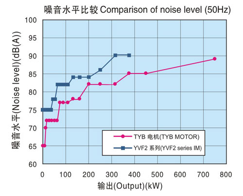 通過(guò)降低電機(jī)總損失,減少電機(jī)冷卻風(fēng)量,實(shí)現(xiàn)了比本公司YVF2系列變頻器專(zhuān)用IM更低噪音化。
